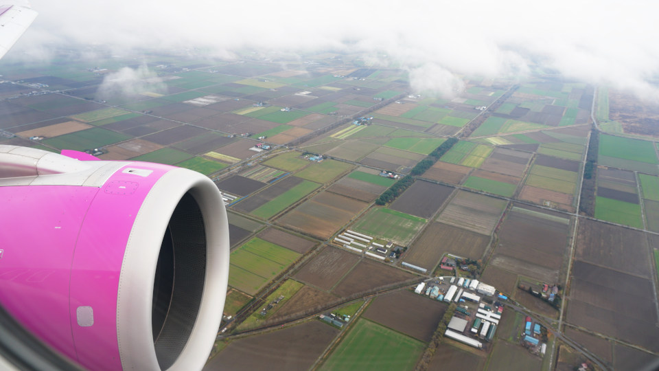 雪にはまだ少し早い北海道新千歳空港へまもなく着陸です、今回の添乗員同行「大満喫モロッコ8日間」「シャウエン」で大きくこけてしまうハプニングはありましたが、それ以上に怪我もなく、無事に帰れたことに感謝して11月の旅、終了です。