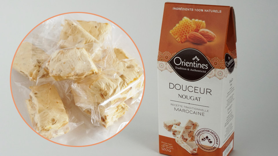 ヌガー、スークの露店でも売っていましたが、これはなかな美味しいです、小分けしたものが8個入っていました 36.5dhm、スークの少し怪しげなモノにも手を伸ばせばよかったかな。