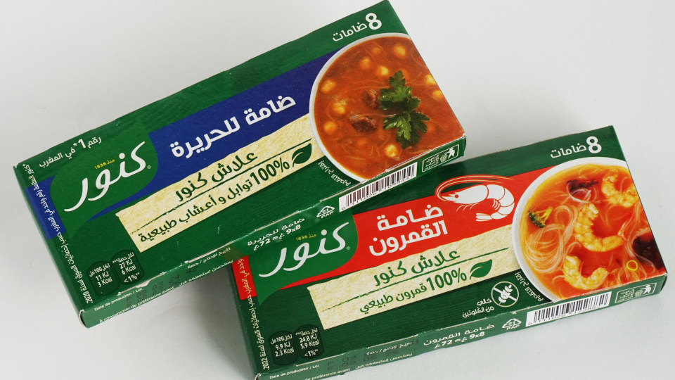 「マラケシュ」のカルフールで購入のクノールのインスタントスープ、キューブタイプ、文字は読めませんが、デザインのスタイルは万国共通?ピンときます、毎回購入してるタイプのモノは探せませんでした、左側 6.95dhm、海老のついてる方 14.2dhm、キューブ各8個入り。