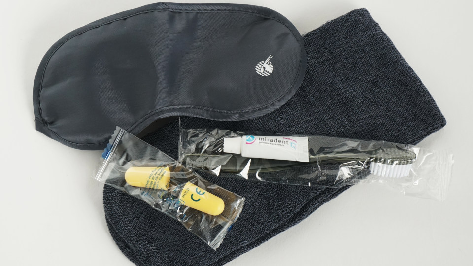 中身はこんな感じ、アイマスク、靴下、耳栓、歯ブラシセット。
