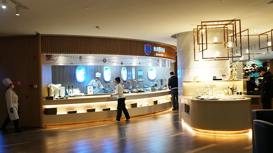 4階へエレベーターで上がって中国東方航空のラウンジ入り口、今回は中国東方航空「空港ラウンジ付き航空券」と言うことで、往復路ともにラウンジが利用できました、指定のラウンジは137番、往路の乗り継ぎは3時間30分でそれほど長い時間ではないですが、復路は7時間55分の乗り継ぎ時間でラウンジが利用できるというのはとてもありがたい。