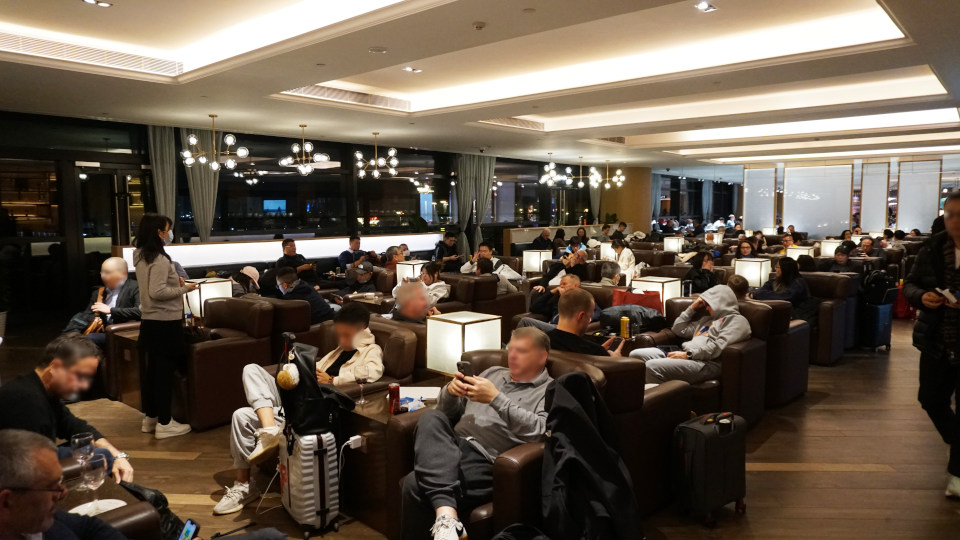 ターミナル3、サテライトにある中国東方航空のラウンジの様子、かなりにぎわっています。