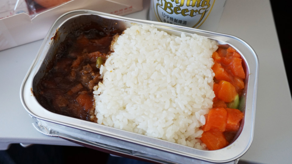機内食サービスにトレイはなくボックスとメインのセットが配られます、エジプト行きで搭乗した中国東方航空と同じスタイルです、メインは「ビーフorチキン」の選選択肢がありました。