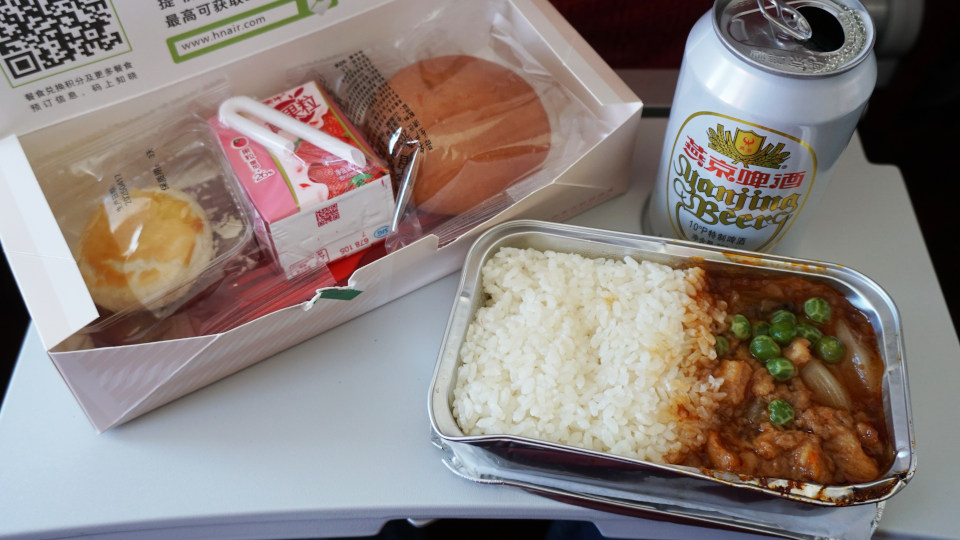少し出発の遅れた海南航空機ですが、新千歳空港から西安空港まで、正しくは西安咸陽国際空港までは予定飛行時間5時間50分、機内食のサービスがあります。