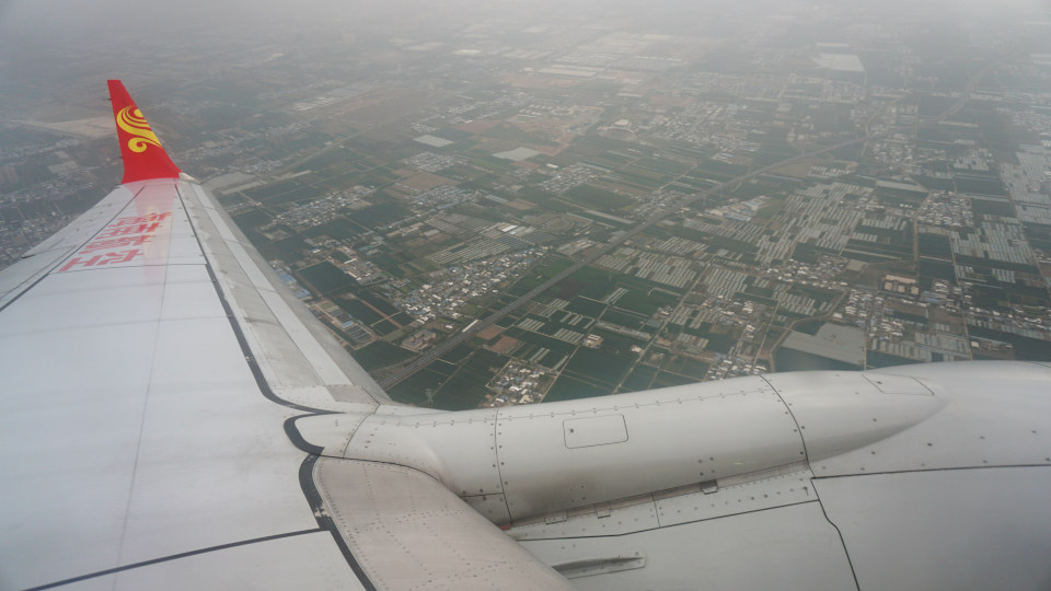 西安の街が見えてきましたが、かなり空気がかすんでる感じです。