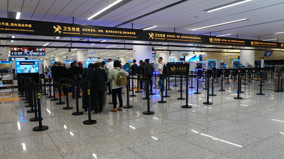 先ずは検疫の列、エジプト行きの、上海、浦東国際空港と同じような感じです、ここではカメラ前に立ち止まってチェックを受けます。