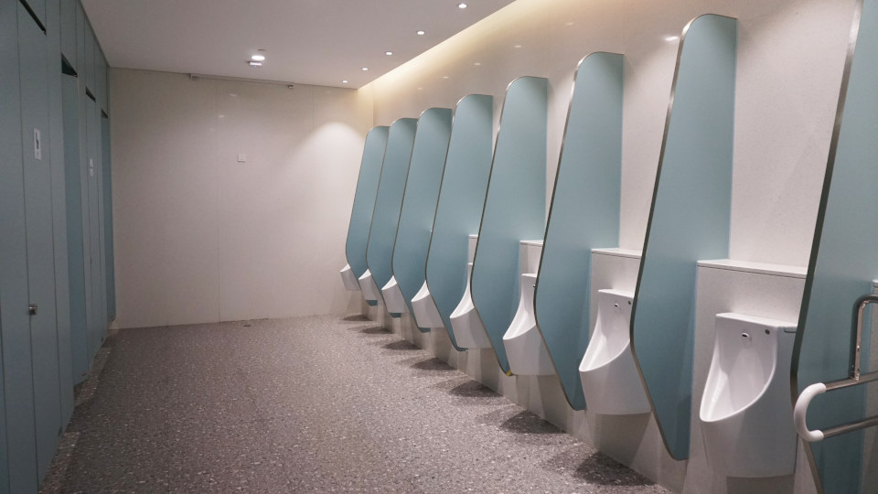 男性トイレの中はこんな感じ、整然と並んだ小便器側の写真になりましたが、帰りの空港内トイレで、空港内のトイレでもまだ?と、気が付くことがありました。