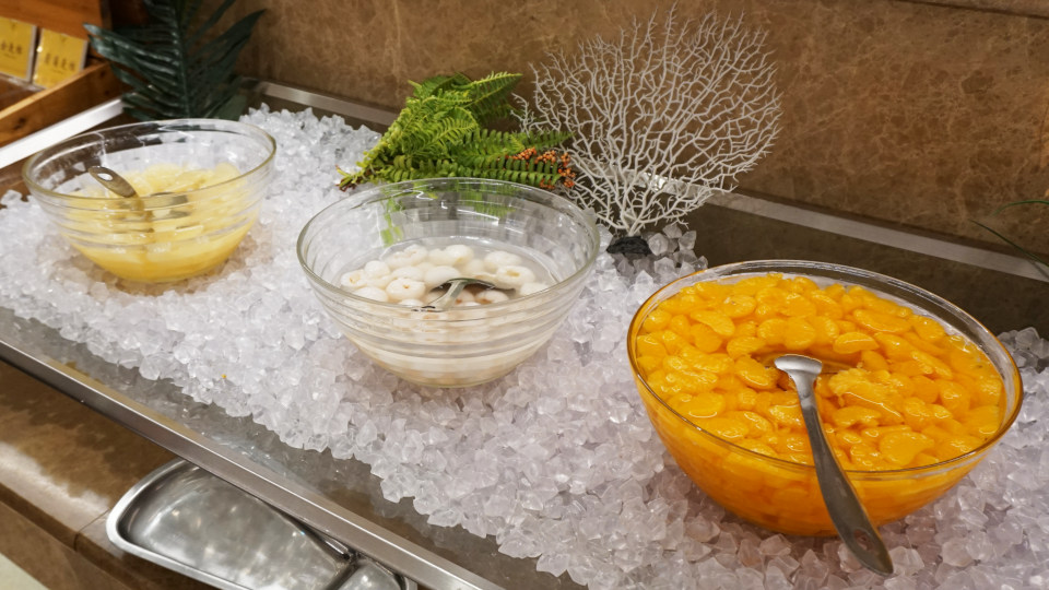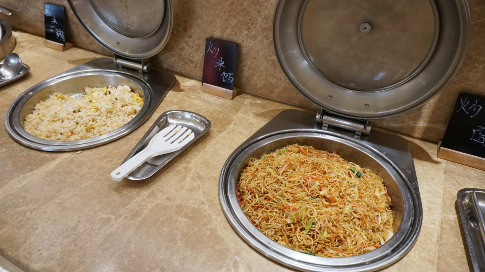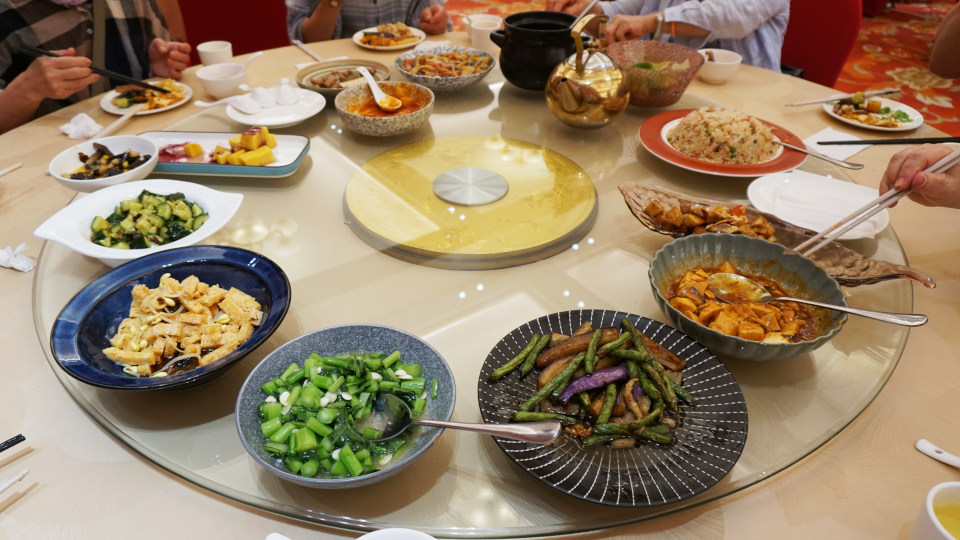 料理のサービスのされ方はここも同じで、回転テーブルにずらりと並べられ、各自の取り皿へ、中華式ビュッフェスタイルです。