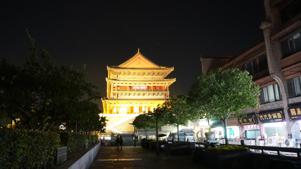 「西安鐘楼」から西側に300メートルほど「鼓楼博物館」の建物がライトアップされいました。