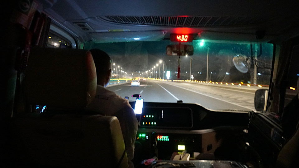 ツアーメイトの皆さんも早めにロビー集合で、バス中の写真を撮った4時30分には空港へ向かう高速道路を疾走中。