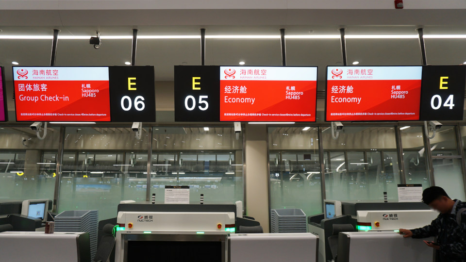 海南航空のチェックインカウウター前に到着したのは5時少し前、07:00発のHU485便の受付はまだ始まっていません、5時からかな。