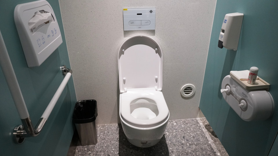 空港で入国時に入ったトイレと同じ構成のトイレ、上の写真は普通の洋式トイレですが、よく見ると個室はすべてが洋式ではなかったんです、あえてしゃがみ込みの中華風を残しているのは何故なんでしょう?。