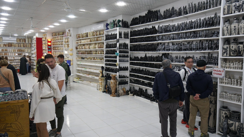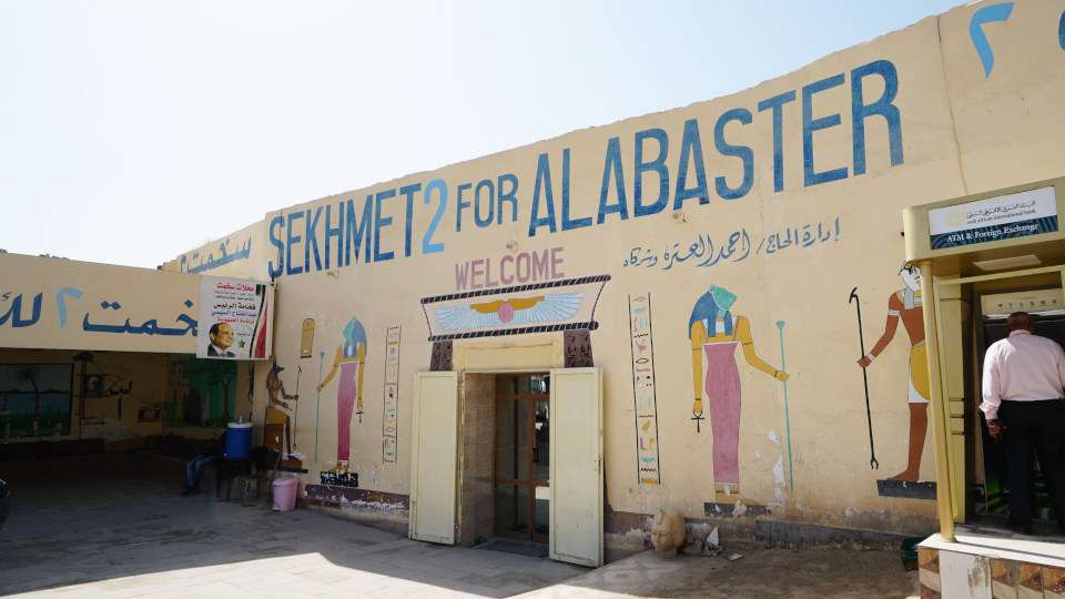 エジプト名産アラバスター製品のお店、このお店がある通りには同じような店が何件か並びます、Googleマップ上の店名は「Sekhmet factory Baster」。
