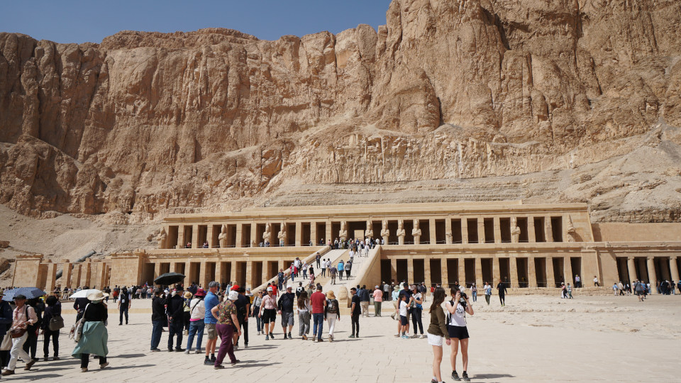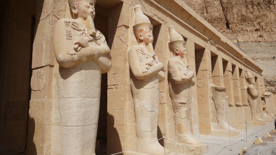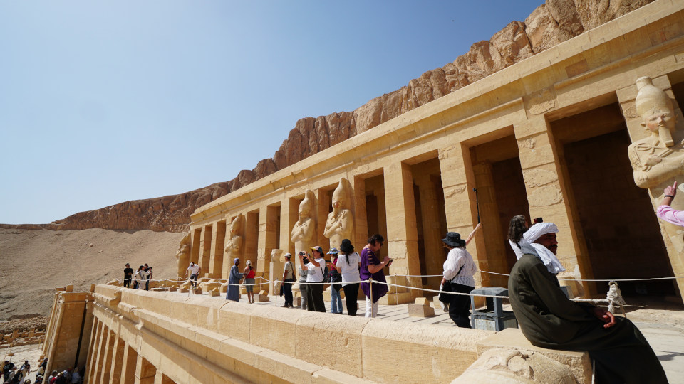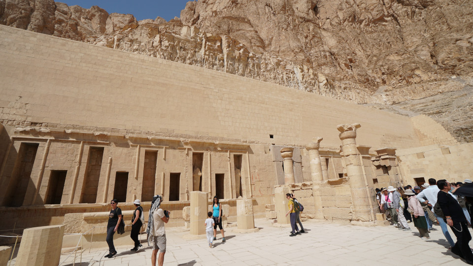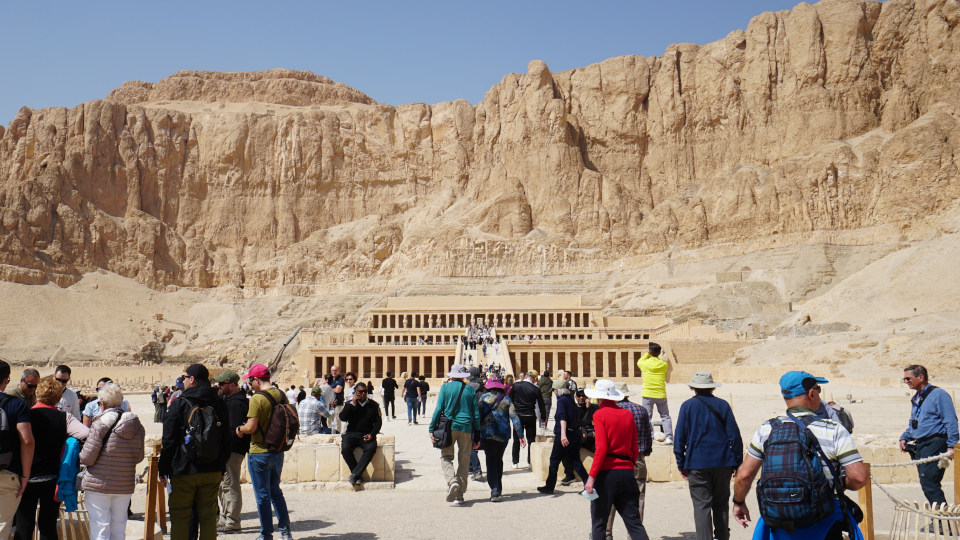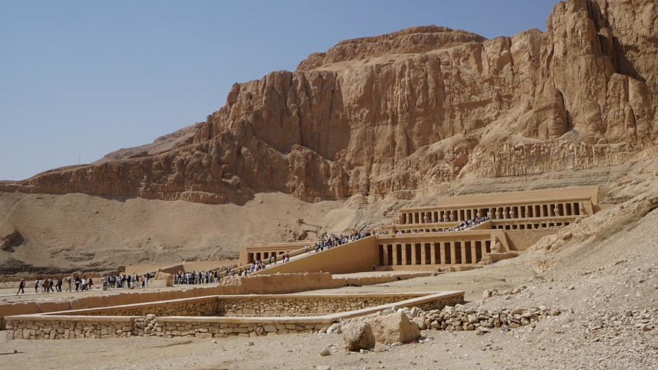 カフェから見返りの「ハトシェプスト女王葬祭殿」。
