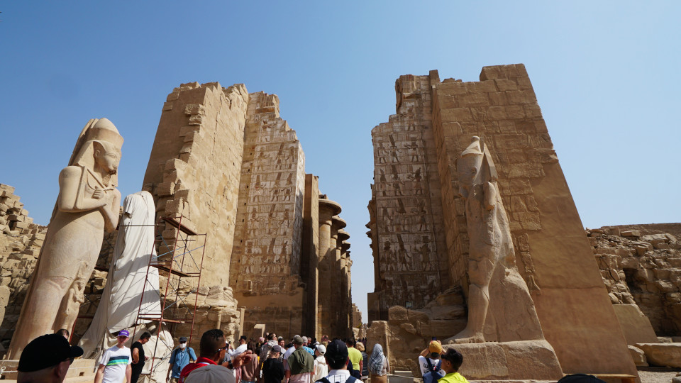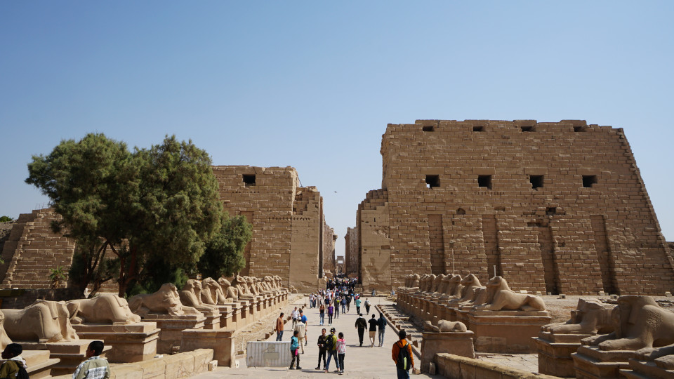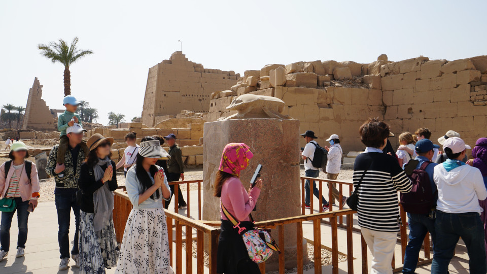 ツアーバスはナイル川西岸から東岸の「カルナック神殿」へ。