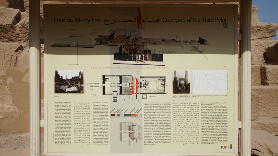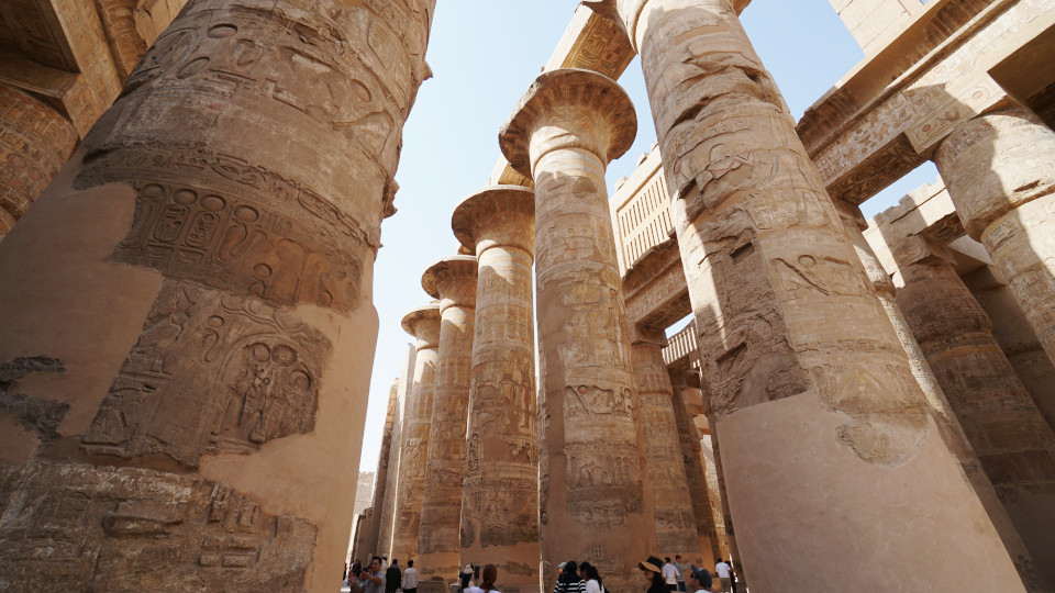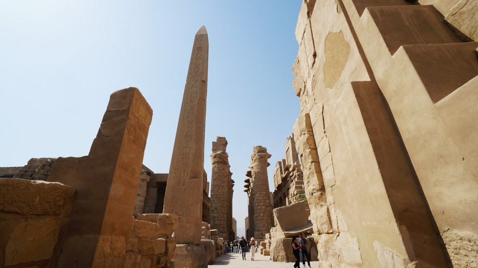 「大列柱室」向こう側に「ハトシェプスト女王」のオベリスクも見えます。