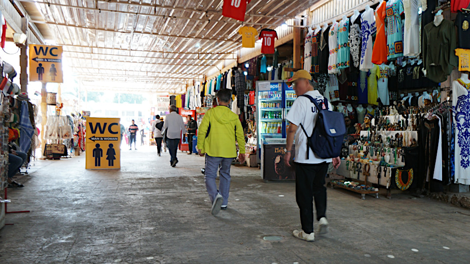 お土産屋さん通りを通り抜けます、大きくトイレの案内がありますが、使ってないのでキレイさや料金は不明。