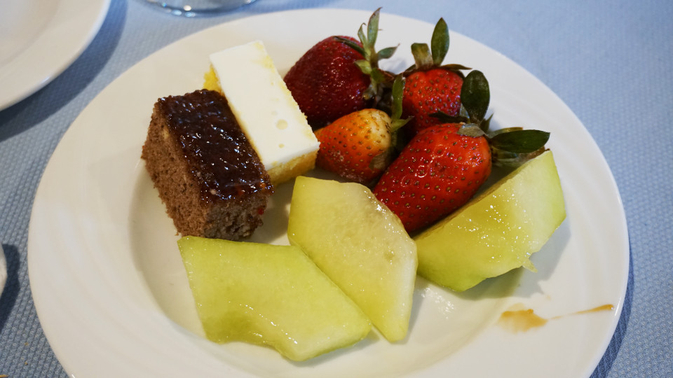 そして夕食、やはりこのコーナーが気になります、今回も素敵なケーキがホールでドーンと。