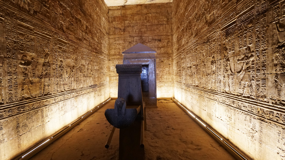 至聖所の中にある「聖なる船」お神輿、至聖所の壁もすべてにレリーフが彫られています。