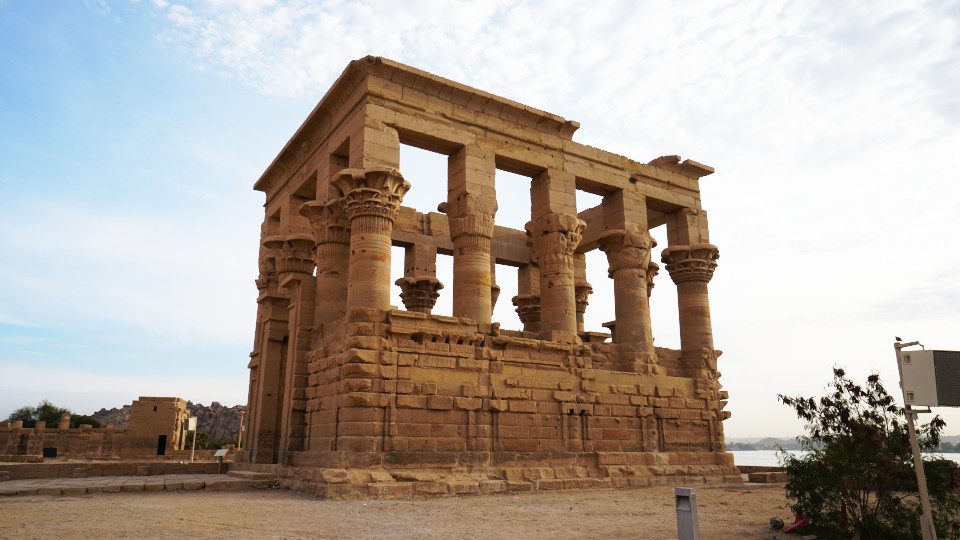 「イシス(フィラエ)神殿」もともと神殿があったフィラエ島は、古代エジプトでは聖なる島とされていましたが、「アブシンベル神殿」と同じくアスワン・ハイ・ダム建設のために水没の運命にあり、1980年までに現在のアギルキア島に移設されました。