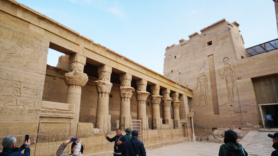 「イシス神殿」は女神イシスを祀る神殿でイシスはオシリスの妻、ホルス神の母とされ、献身的な母と普遍的な母として崇拝されました、写真の第1塔門はプトレマイオス12世の時代のモノ、ちなみにプトレマイオス12世は「クレオパトラ」の父です。