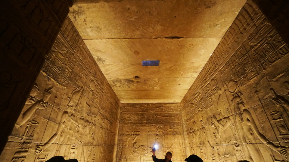 至聖所の内部、ここはプトレマイオス2世の時代のモノで、壁一面に神々のレリーフがあります。