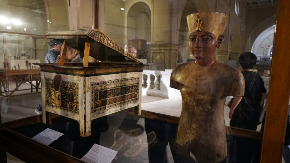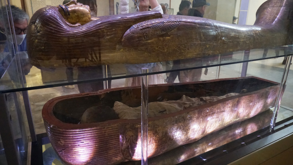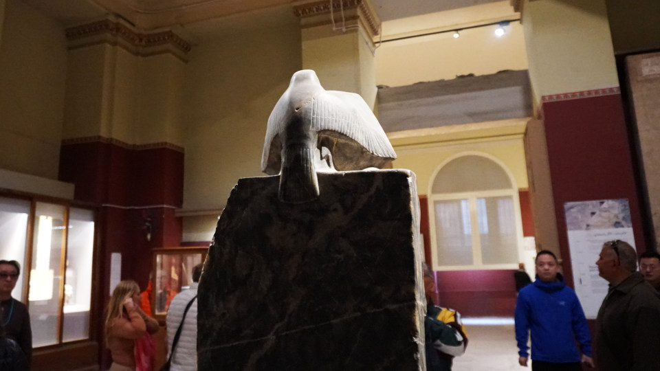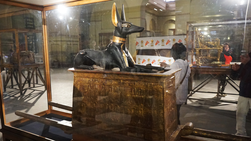 ギザの三大ピラミッド、スフィンクスを回った後、予定では2024年オープンの「大エジプト博物館」見学だったのですが、大博物館は情報によればまだまだプレオープン状態、確かピラミッド近くで発見された「クフ王の船:太陽の船」は復元展示されされていると聞いていたのですが、「エジプト考古学博物館」から「ツタンカーメンの黄金のマスク」等はまだ移されてなく、今回は「考古学博物館」の見学となりました。