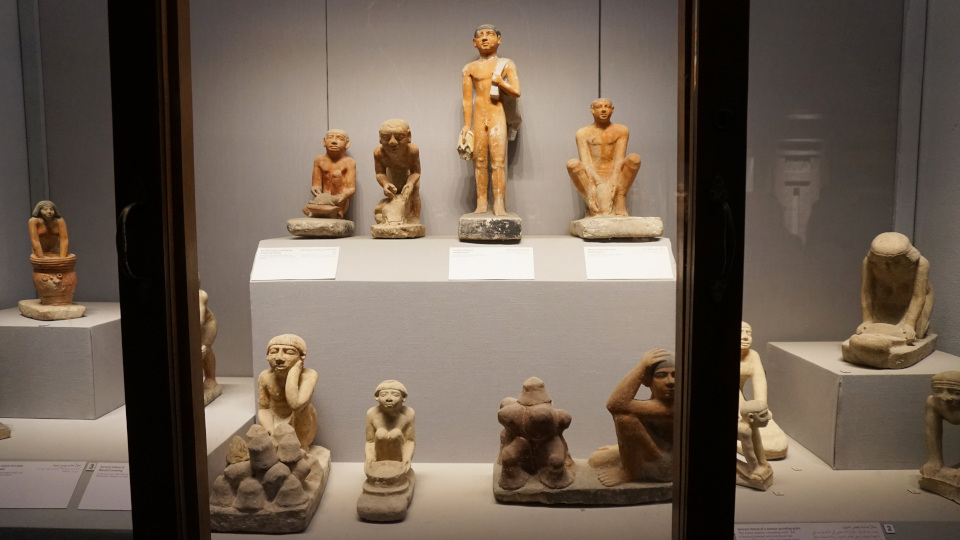 沢山の像が一堂に陳列されているコーナー、左側の像に「ビールを準備する女性の小像」と言うタイトルが付いています、小さく見えますが高さ27センチほどあるそうです。