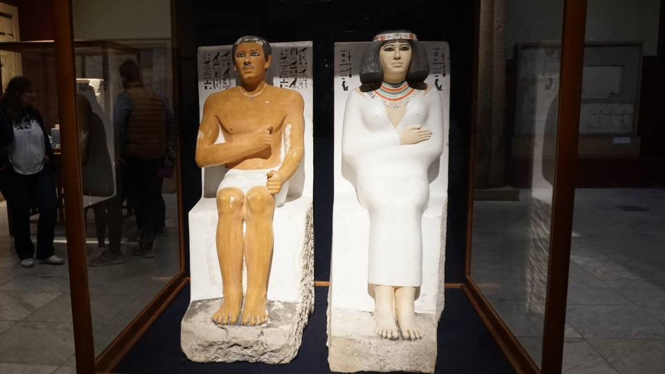 「ラーヘテプと妻ネフェレトの座像」ラーヘテプはクフ王の兄弟です、玉座の背面には夫婦の名前と称号が書かれています、ネフェル=「美しい」と言う意味で、ネフェレト=「美しい人」です