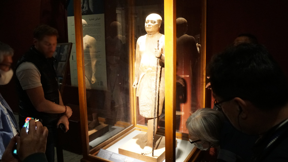 「神官カーアペルの像」通称「村長の像」と呼ばれているそうです、エジプトで発見されている最古の木像だそうで、発見時はかなりバラバラになっていたそうです。