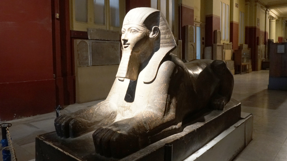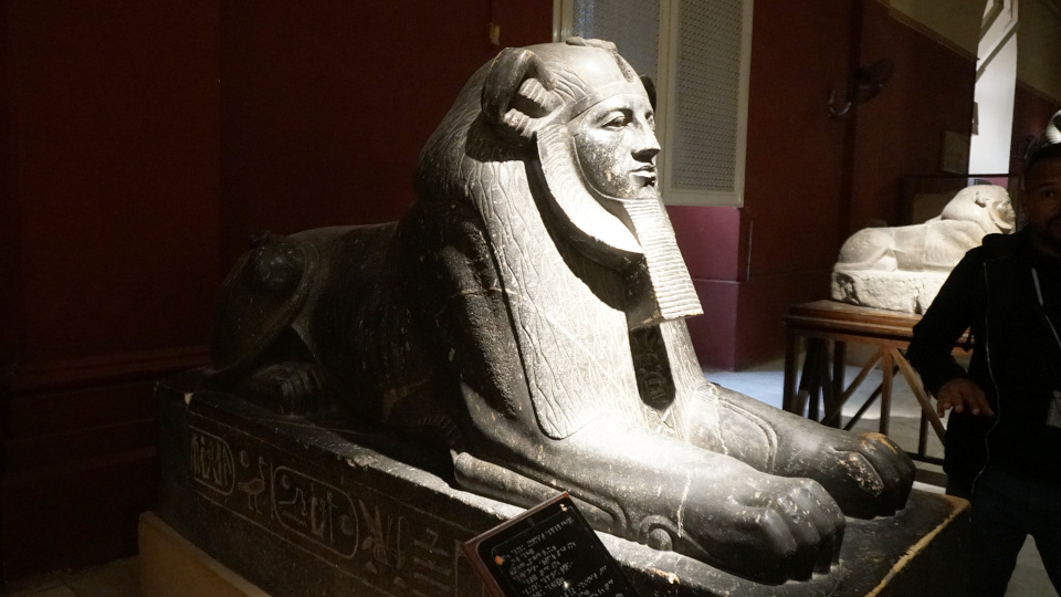 出口の近くには「ハトシェプスト女王」のスフィンクス像も展示されています、頭部の像と同様にかなり美しい顔立ちです。