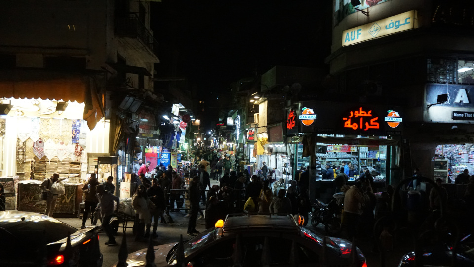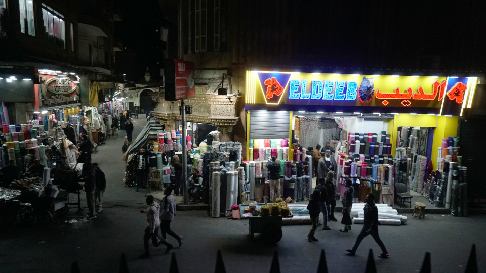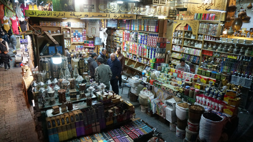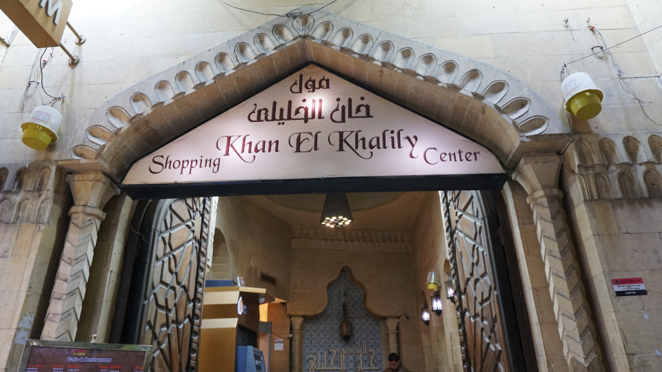 カイロにある最大の市場「ハン・ハリーリバザール」に到着、ガイドさんがここで少し時間をとってくれて目的のお店に向かうツアーメイトさんもいたのですが、雑踏に紛れるのも疲れるのでガイドさんが引率してくれる安心ショップへ向かいました、「クイーン・ネフェルタリ」と言うお店でお土産物を少々物色します、オーガニック製品を扱う有名店「ネフェルタリ」に名前が似ていますが別のお店、少し割高とは思いますが、日本円でも買い物ができるお土産店です。