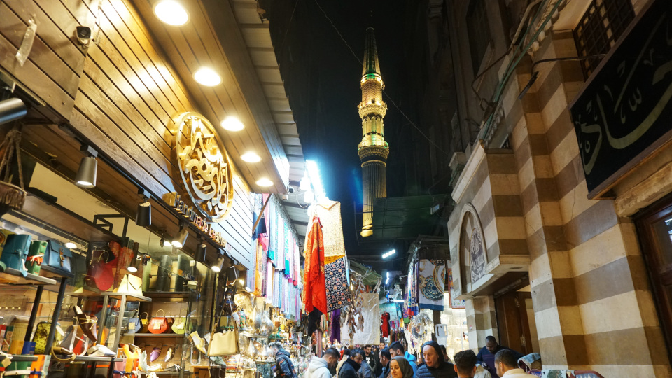 その後、さらにバザールの中を皆さんで散策、先にモスクのミナレットがよく見えます、それにしてもかなりの人出です。