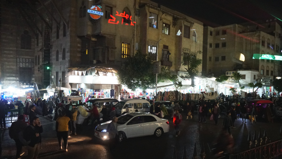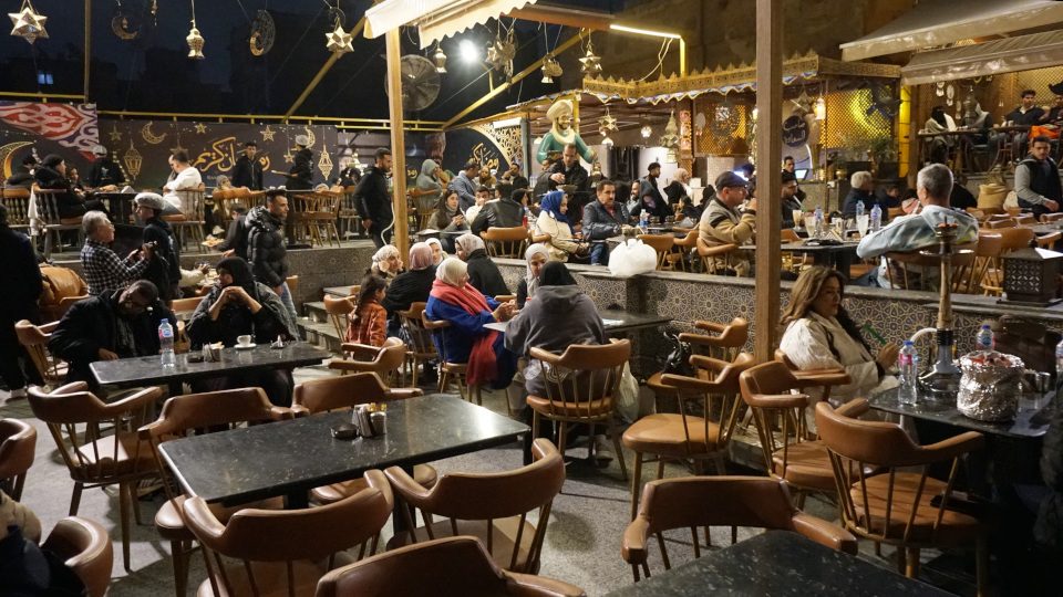 グーグルMapでは「Sa7eb Els3ada roof café」表記のレストランに到着、屋上で天井なしのレストラン、かなりのテーブル席が並んでいます。