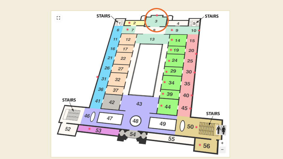 ちなみに2025年に展示されていたのは「エジプト考古学博物館」2階の一番奥、丸印の所です。