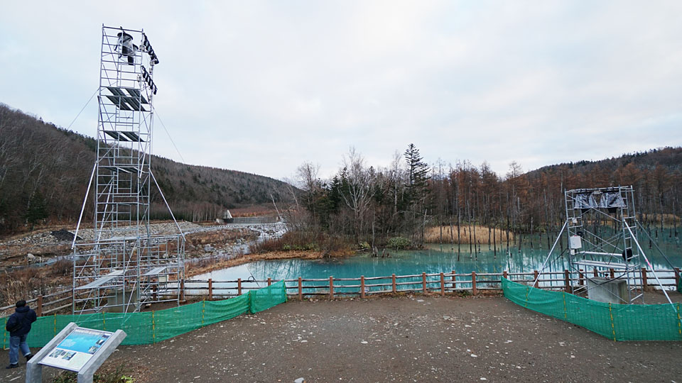 したがって、目的を持って造られたわけではないので、国土地理院の地図では水たまりとされて、水面はかかれていないらしい「青い池」は偶発的に人造池となったもの。