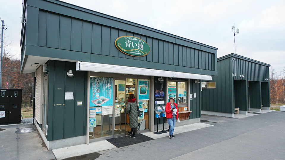 道の駅びえい「白金ビルケ」、「白ひげの滝」から引き引き返して、ここで「青い池」のライトアップが始まるまでの時間調整です、お買い物時間は20分、外はかなり冷えてきましたので重要なトイレタイムのポイントです。